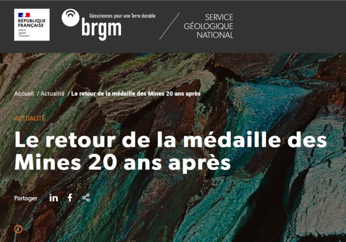 "Le retour de la médaille des Mines 20 ans après" publié par BRGM.