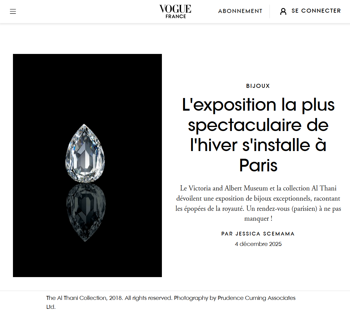 "L'exposition la plus spectaculaire de l'hiver s'installe à Paris" publié par Vogue France.