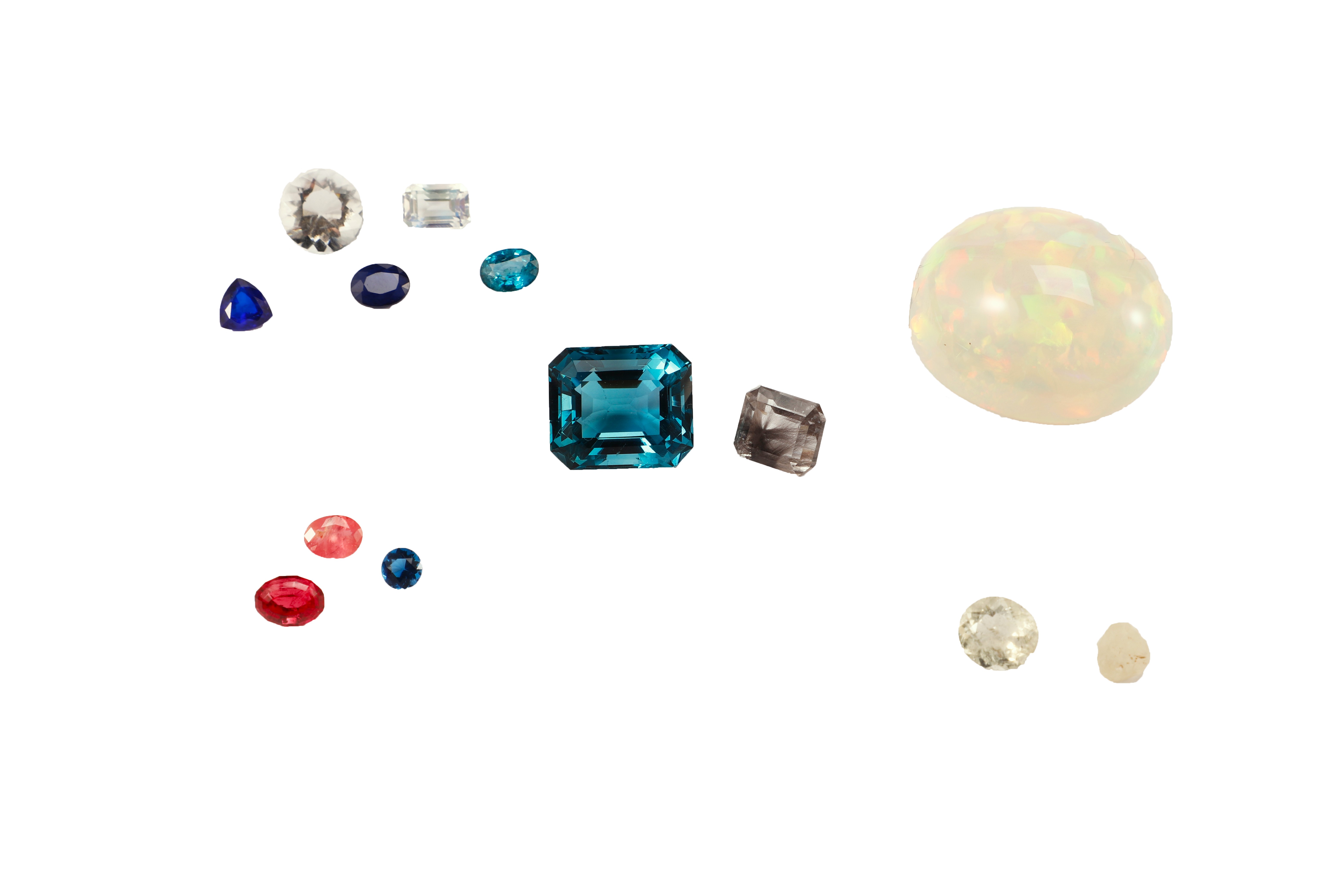Regroupant plusieurs espèces minérales, les grenats sont aussi beaux que variés, de l’almandin rouge à la spessartine orange au grossulaire vert (tsavorite), et bien d’autres encore. Utilisés en bijouterie depuis la nuit des temps, ils ont été remis au goût du jour pour leur variété de couleurs, dont la fameuse couleur orange intense, aussi appelé « Fanta » ou « mandarin ». Ils sont utilisés de la bijouterie fantaisie jusqu’à la haute joaillerie, et mis à l’honneur par les plus grands noms de la joaillerie. Les découvertes récentes des grenats pourpres du Mozambique, comme celui au centre en bas de la photo, ont redonné un coup de peps coloré à ces gemmes adorées depuis la nuit des temps. Nos préférés ? Peut-être ceux présentant un changement de couleur du bleu-vert au pourpre, provenant de Madagascar. Mais au musée, les grenats font partis de nos gemmes et minéraux préférés (dixit la conservatrice) ! |