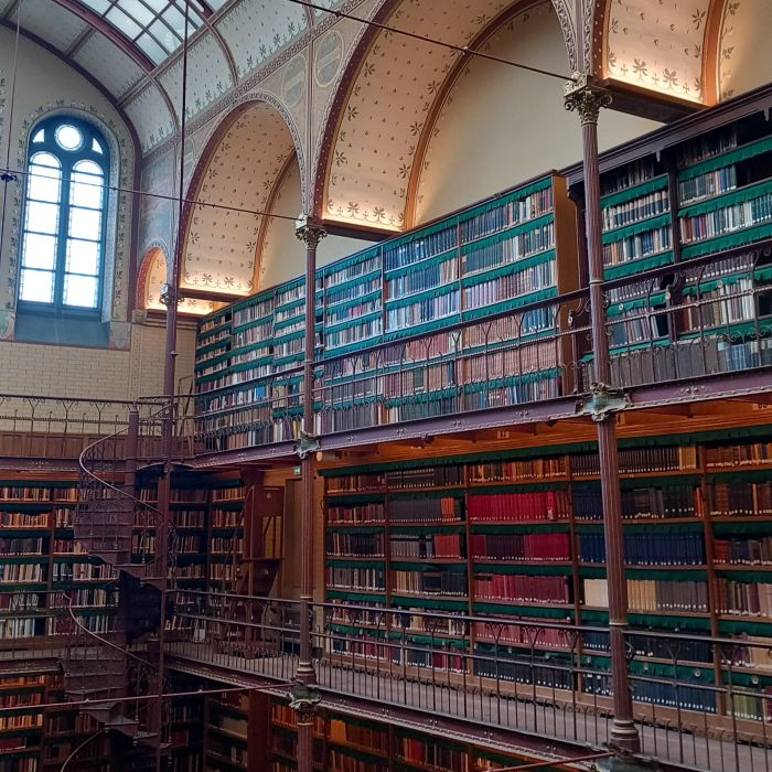 À gauche : la bibliothèque Cuypers située au sein du Rijskmuseum. C'est la plus grande bibliothèque d'histoire de l'art des Pays-Bas, elle contient environ 450 000 objets. À droite : le Frans Hals Museum, musée des beaux-arts, proposant un dialogue muséographique entre œuvres classiques et œuvres modernes et contemporaines.