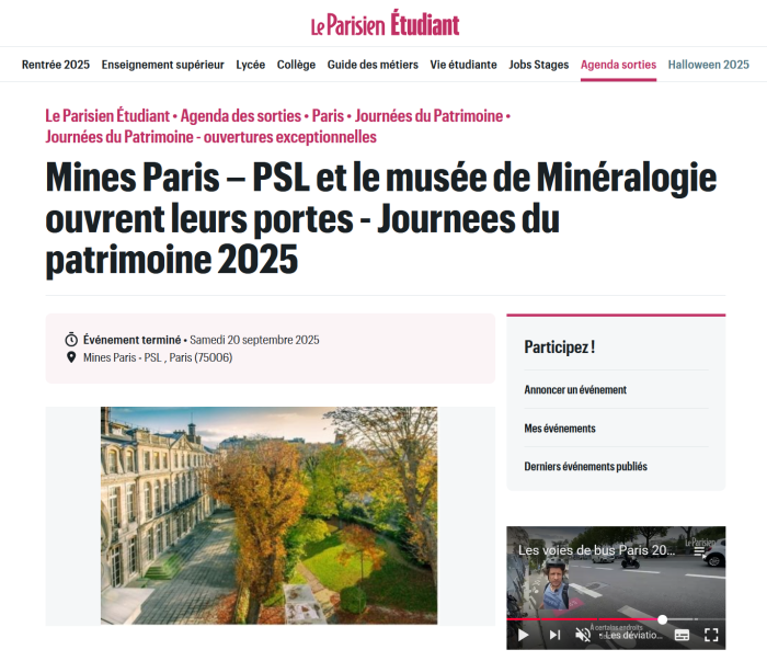 Nombreux sont les articles qui ont été publiés en prévision des Journées européennes du patrimoine 2025, tel que cet article du Parisien Étudiant publié début septembre passé. Cette belle publicité nous a permis de toucher un grand public, nous remercions les grandes enseignes d’avoir diffusé notre programmation !