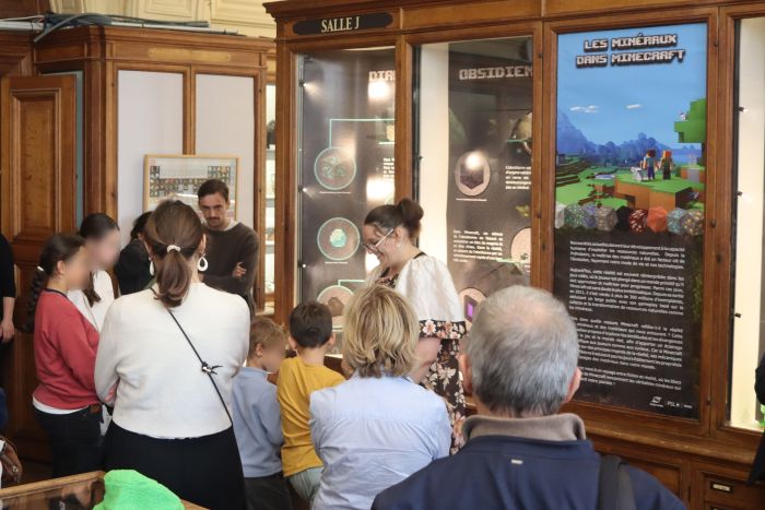 Notre mini-exposition « Les Minéraux dans Minecraft » est cette fois bien terminée ! Pour conclure cette belle aventure, nous avons proposé à nos donateurs et volontaires de participer en famille à une soirée très spéciale, accueillis chaleureusement par notre agent d'accueil et régisseur Marius Aprile. Les commissaires d'exposition, Marine Wavrant et Romain Bolzoni nous avaient préparé une soirée pleine de rebondissements : après un dernier tour de l’exposition commentée par Marine, les plus (ou moins !) jeunes participants se sont engagés dans une chasse aux trésors effrénée !