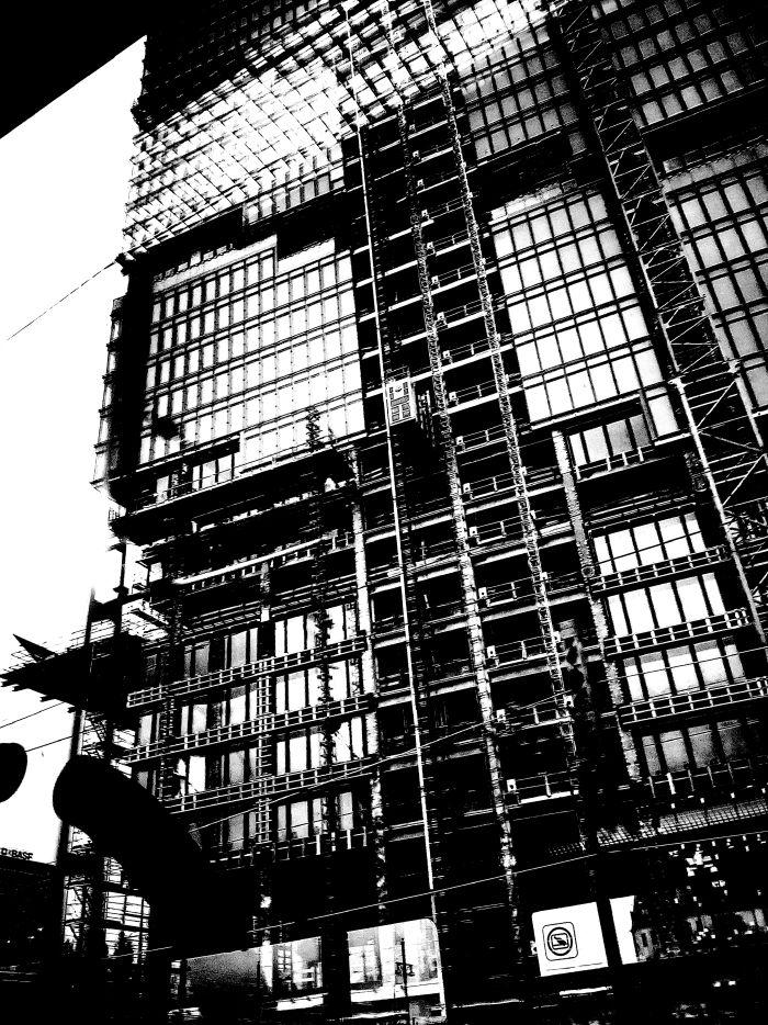 Un immeuble en construction vers l'aéroport, vu depuis la ligne D |