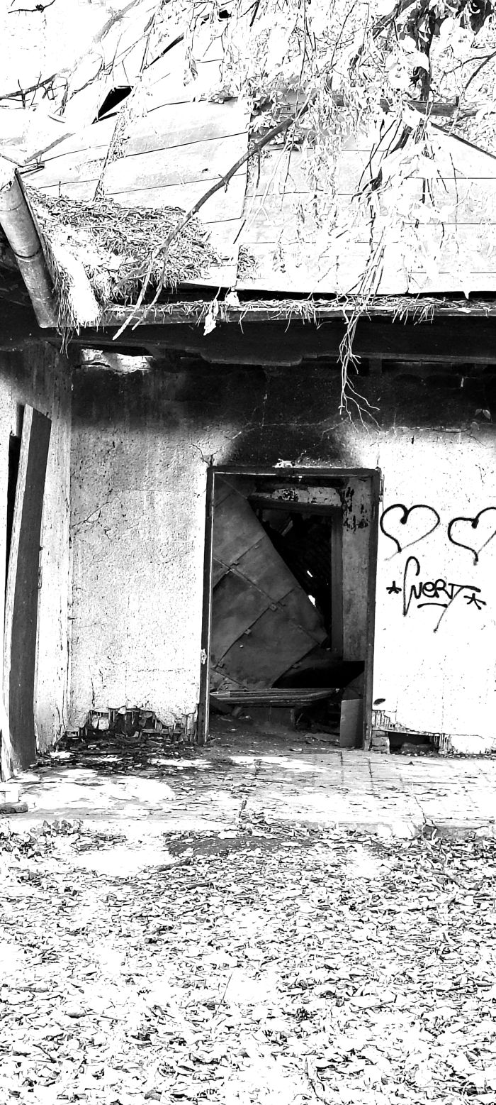 (Une baraque en ruine, dans une partie désaffectée du même parc)