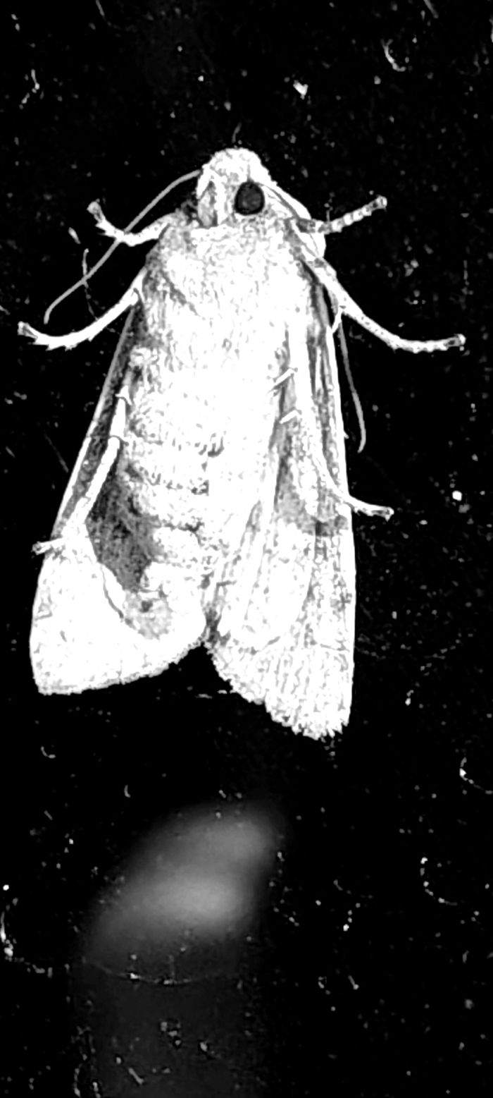 (Une mite en super gros plan, collée contre ma fenêtre, à La Laune)
