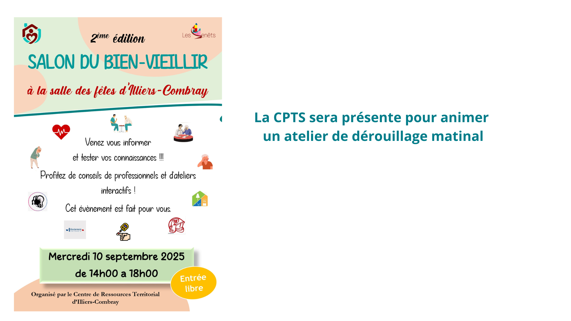 Au programme : conférences, tables rondes, stands et informations. La CPTS sera présente, et Sabrina Godinho, psychologue, fera une présentation théorique du