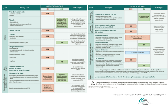 en matière de certificats médicaux.